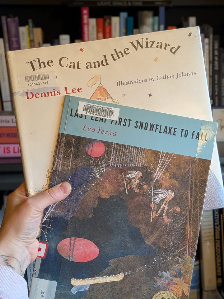 I am halfway through Xanax Cowboy (wowza, no wonder if won the Gov. General’s Award for Poetry!) and my son and I read Last Leaf First Snowflake to Fall by Leo Yerxa (my son really liked it!).